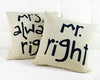Funny Mr and Mrs Right Couple Pillowcase Cushion Cover