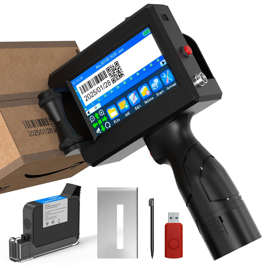 This Handheld Inkjet Printer is a portable high-resolution solution for on-the-go coding and marking across industries. Designed with a precise 0.5-inch nozzle and a 42ml quick-dry ink cartridge, it produces crisp text QR codes barcodes and logos on metal wood glass fabric plastic and cardboard. The 4.3-inch color touchscreen offers intuitive local editing while USB U Disk support lets you import fonts logos and images in TXT CSV JPG PNG and BMP formats without an app.