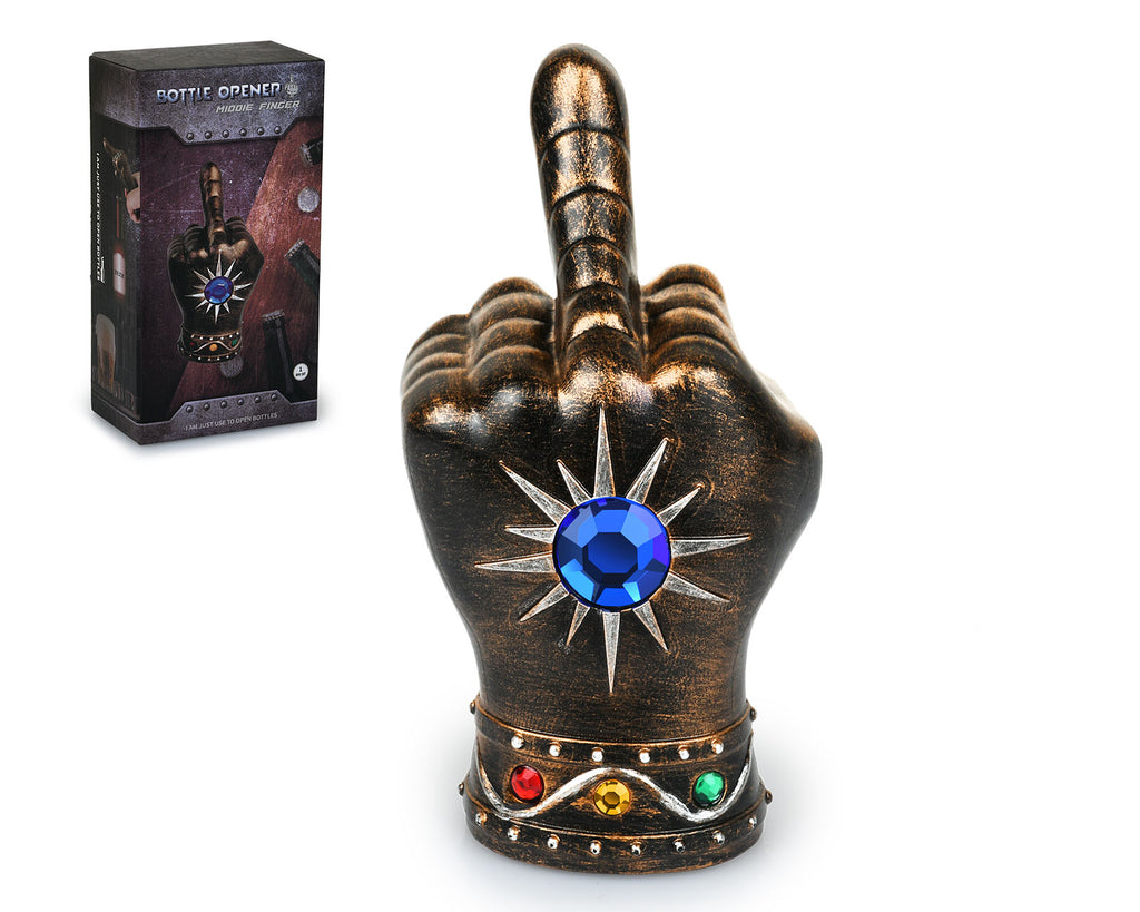 - GIFTABLE - Add a little humor to your drink-mixing routine with this infinity-stone-adorned middle finger-shaped bottle opener. It makes an excellent gift for any occasion and is sure to be appreciated by men